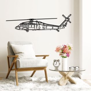 Transform your space with this stunning Sikorsky UH-60 Black Hawk military helicopter wood and metal silhouette wall art. Perfect for your hangar, office, or room, this piece adds a distinctive aviation-inspired touch that’s sure to captivate any enthusiast and elevate your interior design.